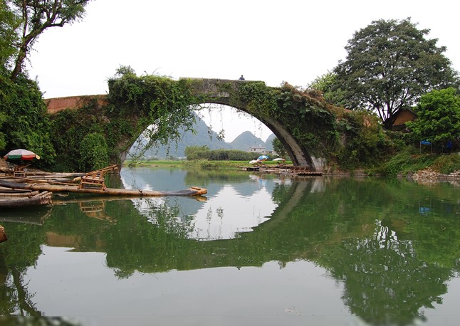 走進遇龍河流域,你不但看得到“精縮”了的漓江山水,還可以看到古色古香的村落,十分風趣的水車,造型各異的古橋。這是一條很有文化品位的河,有水、有山、有竹、有草、有橋梁、有水車、有建筑。其透視出來的歷史氛圍和歲月滄桑,明顯要優(yōu)于漓江。