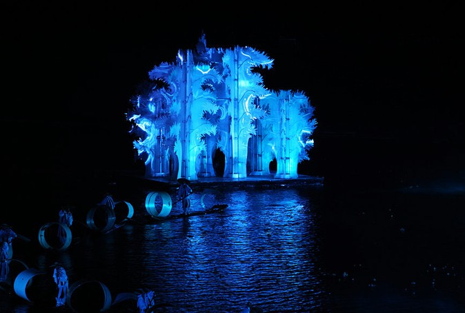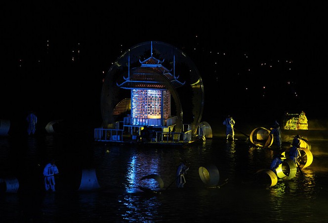 演出以"印象劉三姐"為總題,大寫(xiě)意地將劉三姐留給人們印象中的經(jīng)典山歌、民族風(fēng)情、漓江漁火等元素創(chuàng)新組合,不著痕跡地溶入于山水,還原于自然,成功詮釋了人與自然的和諧關(guān)系,創(chuàng)造出天人合一的境界,被稱(chēng)為"與上帝合作之杰作"。演出把桂林、陽(yáng)朔舉世聞名的兩大旅游、文化資源--桂林山水和劉三姐留給人們的印象進(jìn)行巧妙地嫁接和有機(jī)的溶合,讓自然風(fēng)光與人文景觀交相輝映。演出立足于桂林,與桂林的音樂(lè)資源、自然風(fēng)光、民俗風(fēng)情完美地結(jié)合,我們看演出的同時(shí),也在看漓江人的生活。