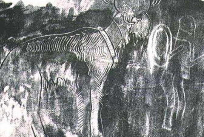 動物以牛和鹿居多,牛的形態(tài)有被狩獵的牛和單獨靜態(tài)的牛,在制作中對小頭,大角,戶胛從藝術(shù)上作了夸張?zhí)幚?,突出了長形尾巴。版權(quán)所有山東聊城聊之旅國際旅行社有限公司,轉(zhuǎn)載必究!對鹿角作了大膽夸張,枝叉打鑿得很精細狩獵畫面4幅,有車獵,單人獵圍獵等三種方式;戰(zhàn)爭畫面有2幅,兩人站立對身,腰懸箭囊,兩矢相連;生殖畫面一幅,男為側(cè)身,女為正面,突出了生殖器的部位。