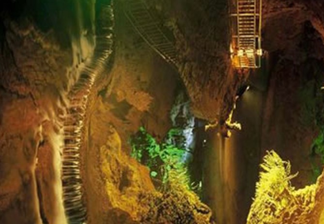 全長4.6公里,亞洲第一地下長河的水溶洞奇觀為景區(qū)主要景點。洞內(nèi)景觀保存完好,清澈見底的地下河終年不絕,水平如鏡。倒影似龍宮、仙境,亦真亦幻,真假難辨;落差達18米的四級地下瀑布構(gòu)成了雄偉奇麗的瀑布群,形成了洞內(nèi)“飛流直下三千尺,疑是銀河落九天”的人間絕景;游客可在地下河內(nèi)漂流,流速時快時慢,讓人既有驚險刺激的感受又可悠閑自如欣賞地下奇觀美景。有張關(guān)“三絕”: 版權(quán)所有山東聊城聊之旅國際旅行社有限公司,轉(zhuǎn)載必究!夢幻倒影、銀河飛瀑、地腹漂流。再輔以地面山林槽谷、田園風(fēng)光,構(gòu)成了難得的立體自然風(fēng)光;山寨、古戰(zhàn)場遺址、古樸的民風(fēng)、動人的傳說、自然與人文巧相輝映;再加上長720米,落差達85 米的中國第一高空速滑和獨具特色的篝火晚會,使游客流連忘返。