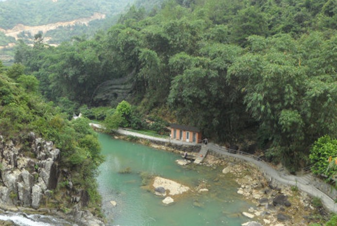 鳳翔峽位于粵東第一山---鳳凰山山脈東南翼,緊靠鳳凰山脈第三峰---番崠山(1036M),也是鳳凰山的南大門。雄麗多姿的鳳凰山脈逶迤起伏,峰回路轉(zhuǎn)到了大山地界,大山有一個(gè)鳳湖村,背靠主峰1391米的高山,村前兩座林木疊翠的青山中間形成了一條曲曲彎彎的峽谷,山谷險(xiǎn)峻陡立,清泉如玉噴珠,這就是風(fēng)景獨(dú)特的鳳翔峽。