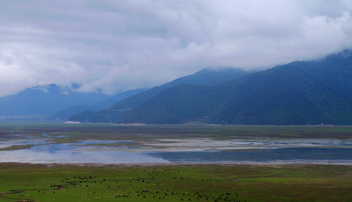 香格里拉納帕海位于中甸縣城西北部,距縣城8公里。保護(hù)區(qū)面積3125平方公里、海拔3266米、湖泊積水面積660平方公里。保護(hù)區(qū)地勢平坦,三面環(huán)山,冬春季節(jié),山嶺積雪。那曲河、奶子河等十余條河彎彎曲曲,流經(jīng)草源注入 納帕海。海西北面的辛苦雅拉雪女山麓有天然落水洞九處,洪水經(jīng)過溶洞,從尼西湯滿河排出、流入金沙江。每逢雨季、湖面增高、到旱季洪水排出、湖面縮小、大部分地區(qū)成為沼澤和草甸。