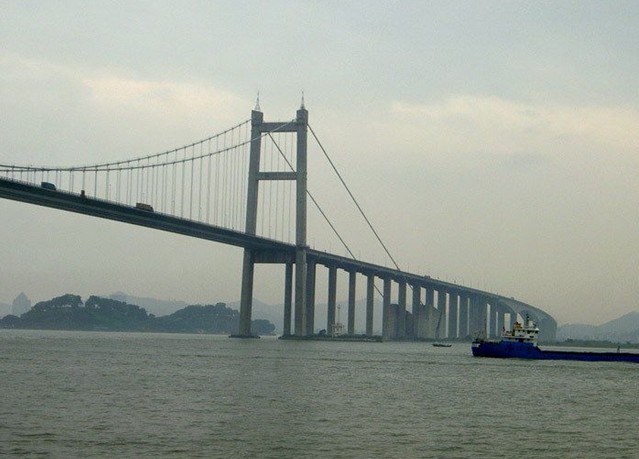 大橋全長15.76公里,主橋長4.6公里,橋面雙向6車道,主跨888米,以跨度大且不用鋼鎖吊住的高難度造橋技術(shù)聞名。虎門大橋的建成通車,跨海連接了虎門、番禺兩地,使東莞成為溝通穗、港以及珠江兩岸和深圳、珠海兩個特區(qū)的交通樞紐。