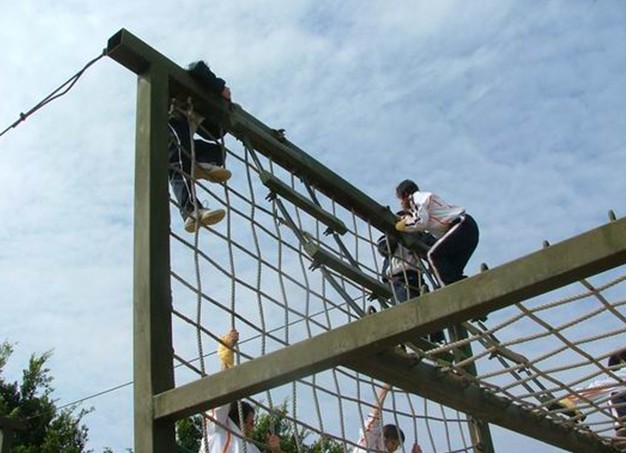 此項目由6根橫碼、軟梯、高空平網(wǎng)、高空豎網(wǎng)、空中高桿等部件組合而成。需要極佳的團隊協(xié)作精神,要求全體參訓人員必須互相支持、相互配合,相互幫助及互相鼓勵,勇往直前定能出色完成此項目。