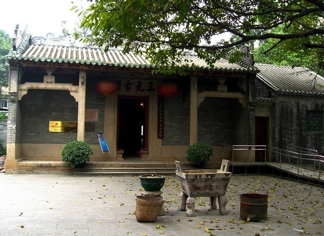三元里人民抗英斗爭紀(jì)念館館址三元古廟,位于廣州市廣園中路34號(hào)。該廟建于清初,原是一座道教神廟。鴉片戰(zhàn)爭時(shí)期,三元里人民自發(fā)組織起來在古廟前誓師抗英,譜寫了近代史光輝的一頁。