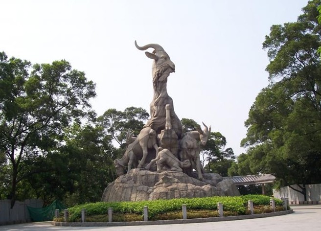 關(guān)于“五羊”、“五仙”傳說,前面已有介紹。“五羊銜谷,萃于楚庭”,是古代廣州人民向往美好生活而衍生出來的神話故事。這的確是一個美麗的傳說,對古代的百越人民來說,還有什么比“永無饑荒”更美好呢,五位仙人送給廣州人民的優(yōu)良稻種,加上廣州地區(qū)陽光充足、氣候溫和、雨量充沛的良好自然條件,使廣州人民獲得大豐收,廣州也就成了嶺南最富庶的地方。五羊石像坐落越秀公園內(nèi),該石像有一美麗傳說:五位仙人身著五色衣服,騎五色羊,從南海飄來,降臨廣州,五只羊嘴里各銜一莖六穗的稻谷。仙人將稻穗送給當?shù)鼐用?,并祝福永無饑荒,言畢騰空而去,羊化為石。廣州亦得別稱“羊城”和“穗城”。根據(jù)古老的傳說1959年在越秀山建一座五羊塑作。這座五羊石雕,連基座高11米,共用130余塊花崗石雕刻而成,體積約53立方米,僅羊頭部的一塊石料就重達2噸多。五只羊大小不一,母羊昂首遠望,口銜谷穗,又似回眸微笑,探視人間。其余四羊,環(huán)繞其身,親密依偎,或嬉戲、或吃草,或吸乳。姿態(tài)各異,造型優(yōu)美,情趣橫溢。據(jù)說當年雕像竣工時,有人提出既是五仙騎的羊,怎會還有在吸奶的乳羊呢?其實仙人五羊都是想像出來的神話,既是仙羊,無論大小,自有仙風道骨,佛法無邊。雕塑家們發(fā)揮其超群的想象力,匠心獨具。40多年來,五羊石雕被譽為廣州城徽,版權(quán)所有山東聊城聊之旅國際旅行社有限公司,轉(zhuǎn)載必究!為越秀公園增色不少。五羊的傳說也廣為流傳,海內(nèi)外游客到此浮想聯(lián)翩,流連忘返,紛紛攝影留念。