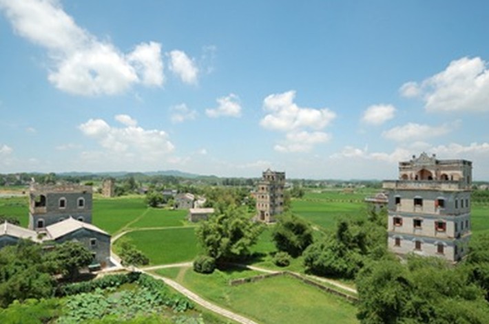 廣東開平市的田野上,一座座歐式古典風(fēng)格的小樓與中國南方農(nóng)村的傳統(tǒng)土屋交錯,形成中國絕無僅有的鄉(xiāng)間景色。碉樓中西合璧,融會了各種建筑風(fēng)格的精髓。開平境內(nèi)最多的時候共有3000多座碉樓,目前尚存1800多座,分布在開平15個鎮(zhèn)、辦事處。這些碉樓是上世紀(jì)開平華僑與村民主動把外國建筑文化與當(dāng)?shù)亟ㄖ幕嘟Y(jié)合的結(jié)晶。其數(shù)量之多,建筑之精美,風(fēng)格之多樣,堪稱世界最大的“碉樓博物館”。