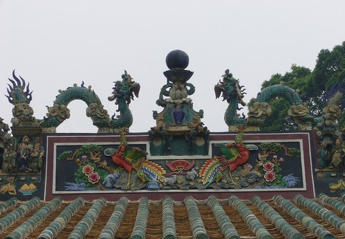 關(guān)帝廟位于廣東省鶴山市共和鎮(zhèn)大凹村。原廟已于100多年前圮廢,現(xiàn)存為光緒二十二年(1896)在原址上重建的。1948年修葺過(guò)一次。廟由山門、正殿、廂房組成,面積280平方米。營(yíng)造手法與佛山祖廟相似,正殿屋頂為綠色琉璃瓦,屋脊以陶塑圖像裝飾,屋煞為光緒年間石灣名工燒制之二龍戲珠。