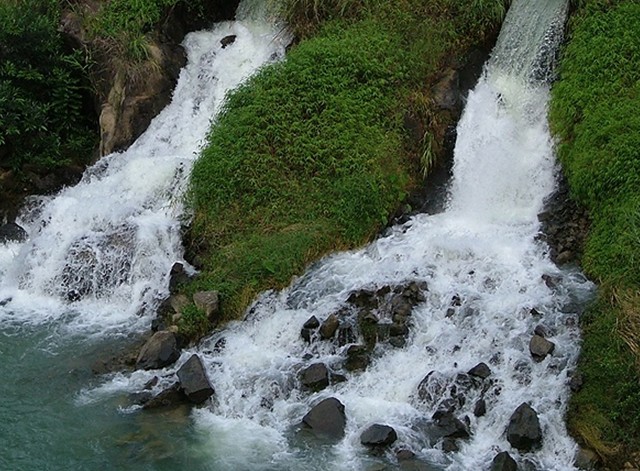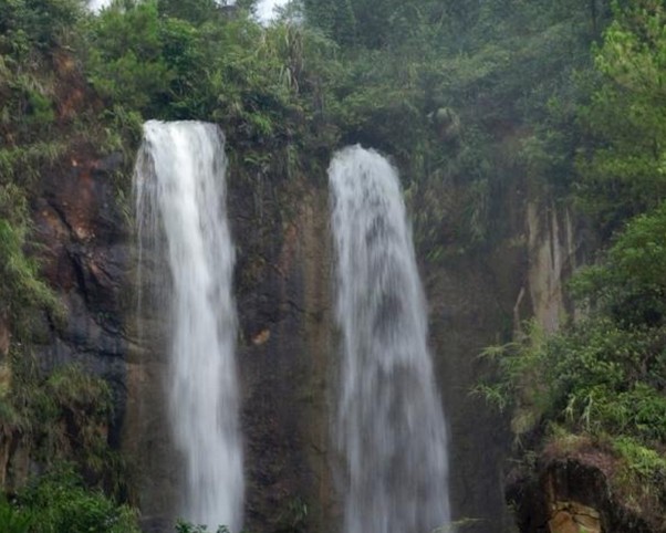 根據(jù)資料記載,鳳南瀑布水盛之時,飛流直下,噴珠濺玉,極為壯觀。但是也就是因為這樣的大落差大流水量,吸引了水利工作者在這里修建了水電站,所以現(xiàn)在我們看到的鳳南瀑布,其實已經(jīng)是經(jīng)過人工改造過的非天然瀑布,因為要利用落差發(fā)電,一道瀑布被水閘分成了三道,遠遠看去,仿佛九龍盆邊上三條白龍,在周遭的綠意中顯得格外醒目。