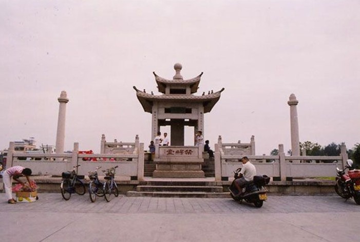 1987年,在原址修建鱷渡秋風(fēng)亭和祭鱷臺(tái)。鱷渡秋風(fēng)亭為金石結(jié)構(gòu),四柱四角雙重檐,分兩級(jí)層臺(tái),上亭下臺(tái),四周有石欄環(huán)護(hù)回廊欄桿,端莊且典雅。亭內(nèi)設(shè)祭鱷臺(tái),題書(shū)“鱷渡秋風(fēng)”、“祭鱷臺(tái)”匾額。其中一聯(lián)日:“佛骨滴來(lái)嶺?;囟鲋兀击{魚(yú)徙去江河自此澄清”。另一柱聯(lián)為:“溪石何嘗惡;江山喜姓韓”。亭中有一條栩栩如生的石鱷魚(yú),脊背上堅(jiān)載大石碑,正面刻韓愈《祭鱷魚(yú)文》全文,背面刻(鱷渡亭碑記》。每年秋天,這里的景色最為迷人。