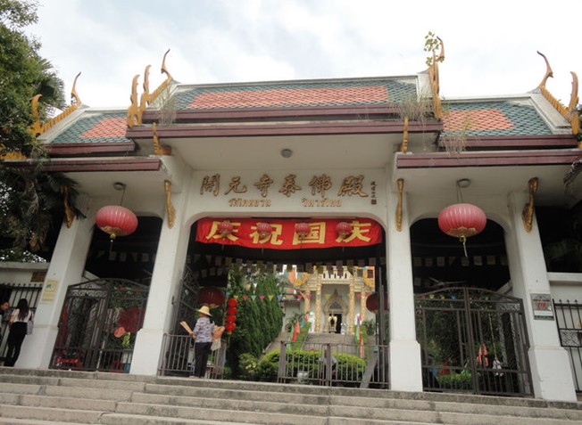 泰佛殿山坡上建有“望江樓”、“望洲閣”及“佛塔”等,東西兩小山丘各懸掛一鐘一鼓。泰佛殿是中泰人民友誼的象征,是中泰文化交流的標(biāo)志。