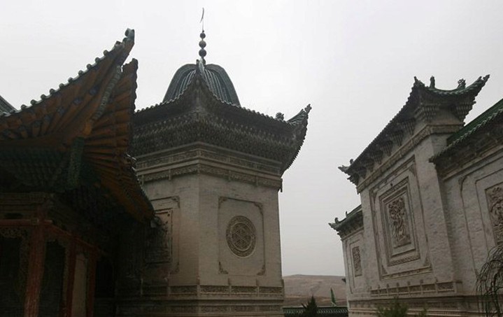 現(xiàn)二十里鋪拱北位于清水河畔50多米的五原山臺上,拱北總體建筑氣勢雄偉,古樸壯觀。全部建筑為六進式,第一進為門廳,第二進為院落,第三進為磚坊,第四進為內(nèi)門,第五進為墓室,第六進為后院。有樓、塔、亭、閣、照壁、六角八卦等。院內(nèi)松柏蒼翠,環(huán)境幽雅。