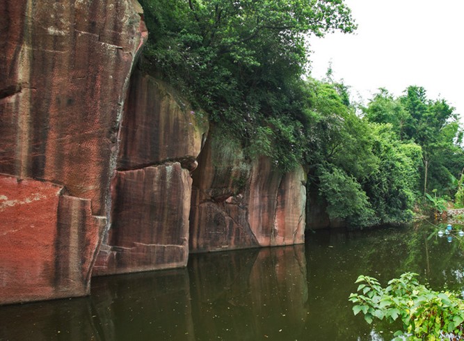 東莞市位于珠江三角洲東南部,穗港經(jīng)濟走廊中點,東南與深圳、惠州毗 連,西北隔江與廣州相望,南臨伶仃洋,是我國南方各地與太平洋沿岸國家地區(qū)往來的主要通道。燕嶺原是東莞這里明清時期的古采石場,有些象廣東最著名的蓮花山的形成原因,樣子也很象。石料為水成巖紅石,經(jīng)數(shù)百年開采殘留下來許多的石壁、石柱,呈暗粉紅色,當(dāng)?shù)厝朔Q之為"十八間房"。