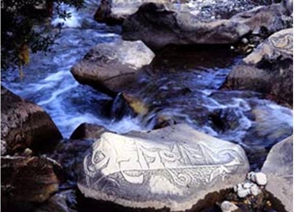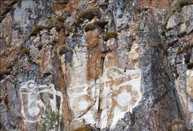 勒巴溝巖畫(huà)位于玉樹(shù)州境內(nèi)的通天河畔。沿著通天河畔的一條山徑來(lái)到這里,會(huì)使你同時(shí)產(chǎn)生兩種截然不同的情緒體驗(yàn):通天河的喧囂、壯闊和勒巴溝巖畫(huà)的靜謐、神圣。勒巴溝巖畫(huà)面江而鑿,處于勒巴溝溝口。勒巴溝內(nèi)蓊郁的草木,也難以掩蓋住由巖畫(huà)和不可勝數(shù)、遍布溝內(nèi)的嘛呢石刻散發(fā)出來(lái)的神秘氣氛。