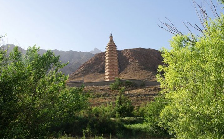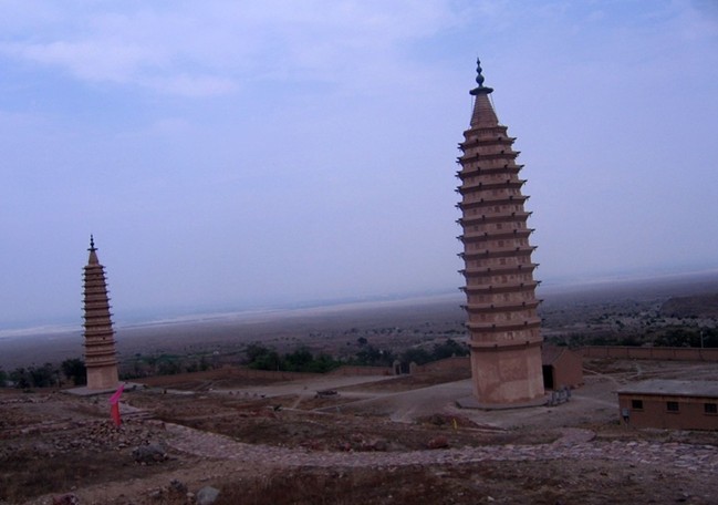 拜寺口雙塔是一對(duì)磚砌佛塔山口東側(cè)的塔稱為東塔是一座正八角形建筑,高13層,每層塔檐下,各面都有各種獸頭的浮雕,西塔也是13層高,較東塔粗壯外形呈拋物線狀,曾發(fā)現(xiàn)梵文、西夏文題記和元代銀幣等。