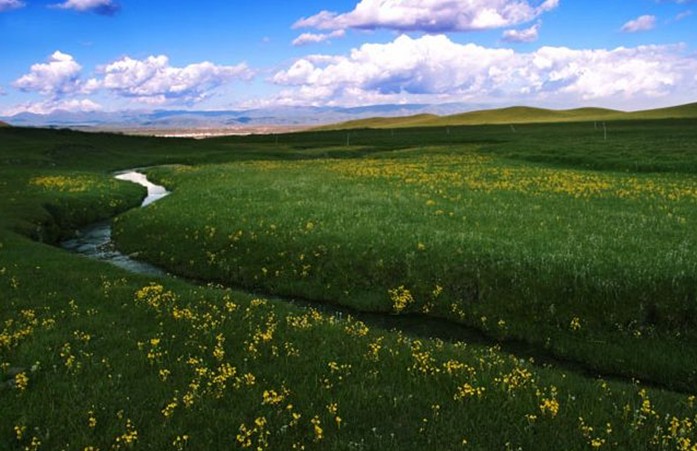 金銀灘的黃金季節(jié)是7、8、9三個月,鮮花盛開,百鳥飛翔,尤其是百靈鳥兒的歌聲,動聽迷人。這里是一片碧草如茵的大草原。浮云般的羊群,版權所有山東聊城聊之旅國際旅行社有限公司,轉載必究!棕黑相間的牦牛,星星點點地徜徉在青草和野花叢中。穿著藏服的藏民,騎著駿馬悠然地在草原上緩緩而來。遠處,山巒起伏,偶有雄鷹飛過的身影,蓮花般的蒙古包散落在白云深處。