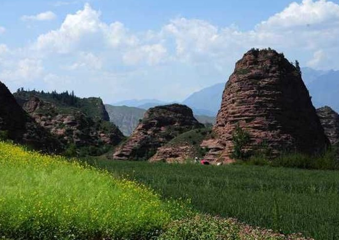 奇特的丹霞地貌景觀:坎布拉丹霞地貌多以奇峰、方山、洞穴、峭壁為其主要地貌特征。大型山體如住狀、塔形、城堡,陡峭直立,雄偉壯觀,氣宇非凡。小尺度的造型地貌似巨人、獸類,各種造型等栩栩如生,形態(tài)千奇百怪,有鬼斧神工之妙。有一個叫德杰的山峰,在陽光照耀下,遠(yuǎn)遠(yuǎn)望去,猶如拉薩布達(dá)拉官之盛景。在這些造型地貌中,以“仙女聚會”、“強(qiáng)起崗”、“南家溝””的風(fēng)光最具有代表性。