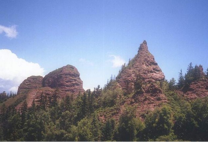 一、奇特的“丹霞”地貌,景色獨(dú)特,奇峰、高山、洞穴、峭壁為其主要特征。山體開頭如柱如塔,似堡似壁,平地拔起