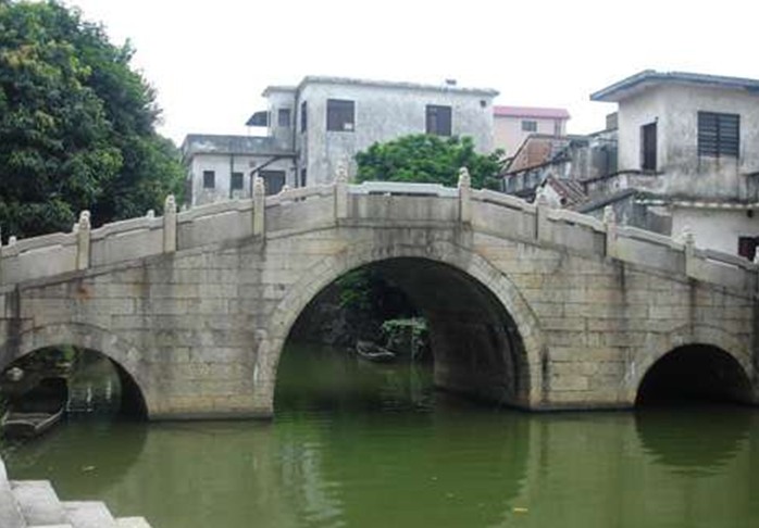 明遠(yuǎn)橋在杏壇鎮(zhèn)逢簡(jiǎn)鄉(xiāng),按順德縣志記載,該橋?yàn)樗未钍诵藿ㄔ?。這是順德梁式三孔石拱橋中,文獻(xiàn)記錄最早的一座。因經(jīng)歷代重修,現(xiàn)橋已難找宋代風(fēng)貌,僅存明代的風(fēng)格了。