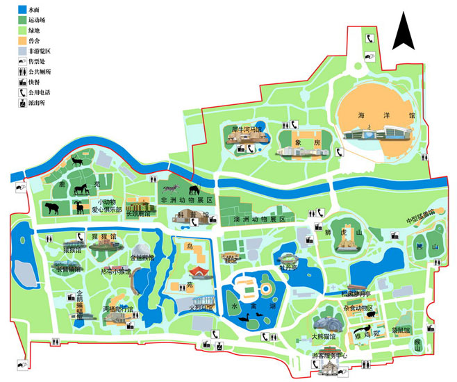 水禽湖,貘館,犬科動物區(qū),美洲動物區(qū),澳洲動物區(qū)。