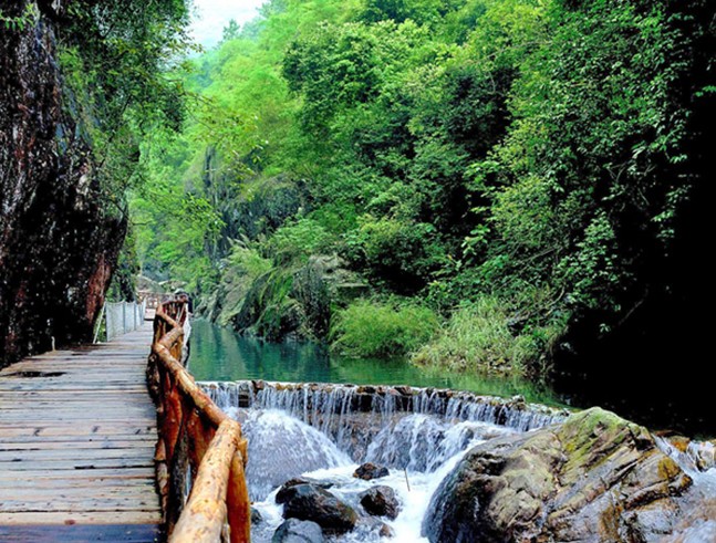 對于大多數(shù)來白水寨觀光的游客來說,最吸引他們的莫過于是那道中國內(nèi)地落差最大的瀑布了!登山觀瀑,親近山水,版權(quán)所有山東聊城聊之旅國際旅行社有限公司,轉(zhuǎn)載必究!在炎熱的夏天享受屬于高山的清涼,更讓人感覺無比快意。在白水寨登山,除了號稱“天南第一梯”的登山步道,濱水而建的親水棧道其實更得游客歡心。它貼著溪流,指向山谷深處,沿途都有綠蔭遮蔽。走在上面時,清新的空氣、和煦的山風與溫暖的陽光伴隨著滿山的翠綠和潺潺的流水聲而來,感覺總是那么舒服,所以人們走得特別慢,為的就是一邊好好地欣賞周遭的美景,一邊盡情呼吸高山流瀑釋放出的美妙空氣!