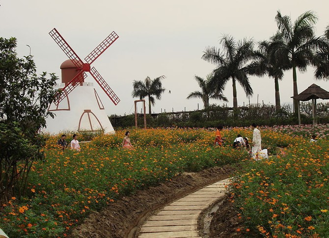 百萬(wàn)葵園位于廣州番禺市,一望無(wú)際的藍(lán)天下,你可以看到“朵朵葵花向太陽(yáng)…”的美麗情景。百萬(wàn)葵園占地260000平方米,100多萬(wàn)朵金黃色的向日葵迎著太陽(yáng)競(jìng)相怒放,構(gòu)成一幅絢麗多彩的田園美景?,F(xiàn)已發(fā)展成擁有世界各國(guó)名花的主題花城,法國(guó)羽葉薰衣草、歐洲樹型玫瑰花、韓國(guó)孔雀花、以及中國(guó)芳香淡雅的茉莉花,目前已成為珠三角地區(qū)新人拍攝外景婚紗照的首選場(chǎng)景!