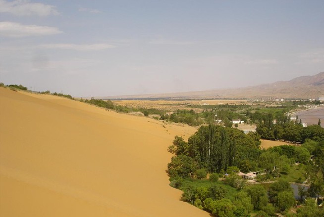 沙坡頭的北面是浩瀚無(wú)際的騰格里大沙漠,而南面是一片郁郁蔥蔥的沙漠綠洲。騎著駱駝在沙漠上走走,領(lǐng)略一下大漠風(fēng)情,別有一番味道。