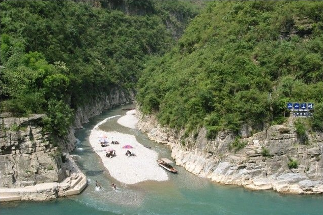 長(zhǎng)灘峽:自雙河至平河,全長(zhǎng)5公里。峽中有一段長(zhǎng)約2公里的河灘,寬十余米,筆直一線,水平如鏡,沙石潔白,兩岸山水掩映,故名長(zhǎng)灘峽。峽內(nèi)谷窄山高,絕壁對(duì)峙,氣勢(shì)雄險(xiǎn);水清見底,水中游弋品種繁多的魚類;沿岸多有色彩斑斕的卵石,時(shí)或見古生物化石。峽內(nèi)有滴水巖、聰明泉、手爬巖、穿洞子等景致。