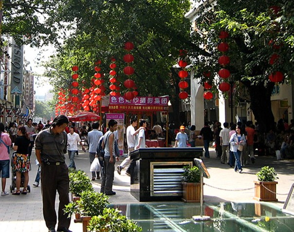 這個繁華區(qū)域的形成有著歷史淵源。明清時期,今中山路(舊稱惠愛街)是廣州舊城東西主干線,南北兩邊大都是官署衙門(東有府學,西為將軍衙門,中有兩個總督衙門),是政治中心區(qū)。北京路(舊稱雙門底)則是由城南直通天字碼頭(官員登陸入城用)的主干道。因此,現(xiàn)在北京路北段與中山四路相連接的丁字形地段,成為當時衙署官僚及其隨員、家屬居住的集中地段。為適應他們的消費需要,版權(quán)所有山東聊城聊之旅國際旅行社有限公司,轉(zhuǎn)載必究!逐漸形成了一個全市的繁華商業(yè)中心。