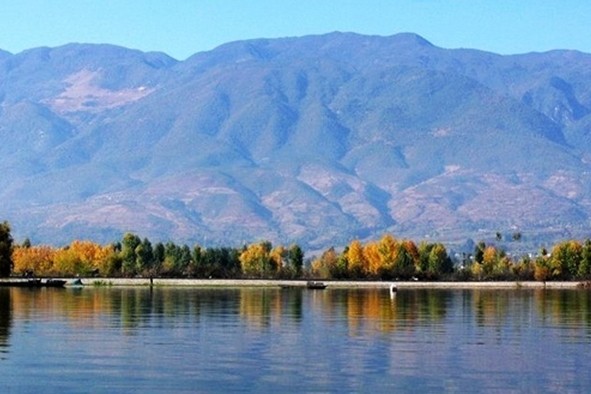 茈碧湖東、北靠山,西南連田,南北狹長(zhǎng),系高原斷陷溶蝕洼地形成的天然淡水湖泊,是洱海上游的主要湖泊之一。