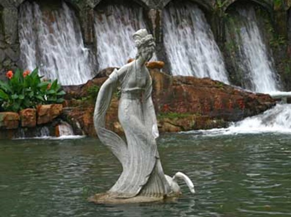 位于瀑布之頂頭甲山上,版權所有山東聊城聊之旅國際旅行社有限公司,轉載必究!始建于1972年,是從化縣當時五項水利工程之一。因建在“百丈飛濤瀉漏天”的高山之上,故命名為“天湖”,喻天上之湖的意思。天湖湖面近1平方公里,縱長7公里,蓄水量為1034萬立方米。湖中建有湖心亭。壩下有仙女池,池中有廣州雕塑家唐大禧雕塑的仙女像。仙女腳踏蓮臺,一手輕提衣紗,栩栩如生,飄然于池中,意欲戲水。仙女池下便是著名的溫泉瀑布。天湖中還備有游湖快艇,人們可乘坐快艇,飽覽湖光山色。