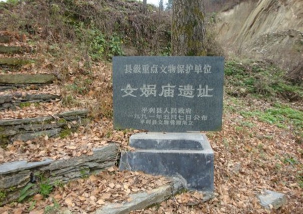 女媧廟坐落在安康市女媧山鄉(xiāng)七里村。據(jù)當(dāng)?shù)匕傩战榻B,解放初期的女媧廟十分龐大壯觀,在平利堪稱第一寺廟,有四扇大門,房宇百余間,殿堂三層,故又稱“三臺(tái)寺”;廟內(nèi)住僧人二三十余、居士若干。但在歷經(jīng)了戰(zhàn)亂、土改、“文革”等重重劫難后,現(xiàn)僅存一間正殿和“平心門”的殘墻斷壁。