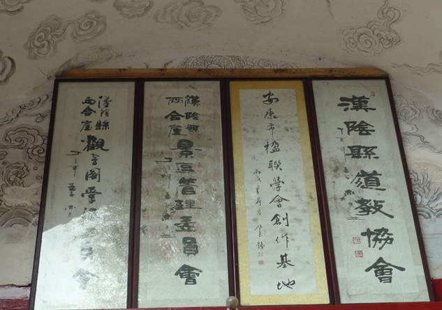 循山而上,廟依山崖,飛檐層疊。沿樵夫小徑通往山腰,只見一片翠綠,嬌艷欲滴,環(huán)抱遍野山菊,相應(yīng)成輝,妙趣天成。坐“陶然亭”小憩,細(xì)細(xì)體味著隱士陶淵明“采菊東籬下,悠然見南山”的怡然自得。亭壁“六龍馭穹蒼,文星射斗牛”的楹聯(lián),激揚文字,豪情沖天,彰顯藏龍臥虎的磅礴氣勢。