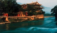 都江堰坐落在成都平原西部的岷江上,位于四川省都江堰市城西。都江堰不僅是舉世聞名的中國(guó)古代水利工程,也是著名的風(fēng)景名勝區(qū)。都江堰附近景色秀麗,文物古跡眾多,主要有伏龍觀、二王廟、安瀾索橋、玉壘關(guān)、離堆公園、玉壘山公園、玉女峰、靈巖寺、普照寺、翠月湖、都江堰水利等工程。