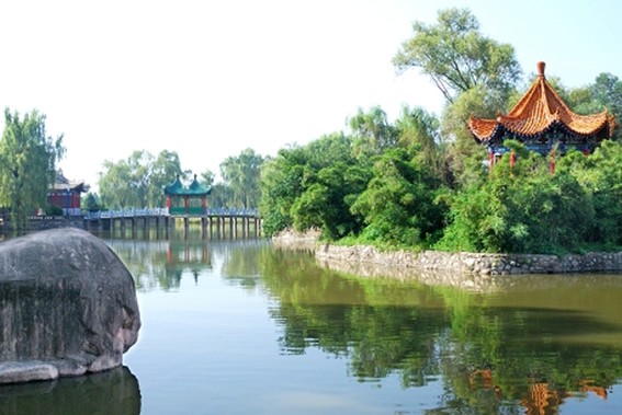 現(xiàn)在,東湖有景點(diǎn)二十余處,湖面五萬七千六百多平方米。集亭、谷、樓、閣、廊、堂等古代建筑精華于一處,是一座典型的北方歷史性園林。