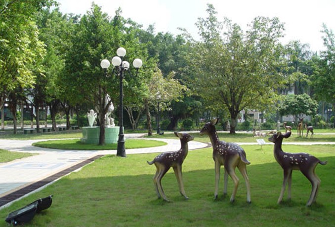 天河?xùn)|站綠化廣場(chǎng)位于廣州市新城市軸線上,占地面積4.7萬平方米,于1998年9月中旬動(dòng)工,1999年7月1日正式完成并交付使用。廣場(chǎng)中央綠地2.6萬平方米,鋪種馬尼拉草18315平方米,其中有6000平方米種植標(biāo)志性的紋樣,分圍種植1300平方米的福建茶綠籬。中央草坪四周設(shè)有41個(gè)花池,24個(gè)柵池,24個(gè)花缽,廣場(chǎng)綠化率達(dá)82%。仿南越王墓制式花壇,遍植各種嶺南花卉。