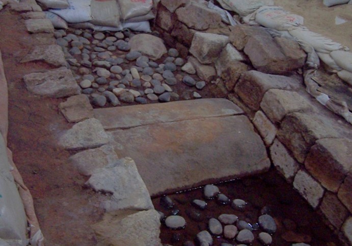 當考古人員在清理水池南壁的一塊石板時,發(fā)現(xiàn)上面刻鑿有一個斗大的“蕃”字,頓時所有人的目光都聚集在這塊并不起眼的石板上。廣州古稱蕃禺,“蕃”是“蕃禺”的省稱。嶺南地區(qū)曾多次出土刻有“蕃”或“蕃禺”的秦漢時期器物。1953年,在廣州市西郊西村石頭崗1號秦墓出土一件漆奩,蓋面有“蕃禺”兩字烙印。1983年,在廣州市象崗山發(fā)現(xiàn)的南越王墓里出土有6件銅鼎、1件銅壺和1件銅匜上分別刻有“蕃”或“蕃禺”文字。1976年在廣西羅泊灣發(fā)現(xiàn)的漢代一號墓中也出土1件刻“蕃二斗二升”等文字的銅鼎。石板上的“蕃”字與《史記》、《漢書》記載南越國的都城“蕃禺”相互印證,非常明確地告訴我們,這里就是蕃禺城的所在,真是一字值千金!