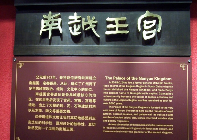 1995年、1997年在廣州北京路與中山四路交會處,發(fā)現(xiàn)了兩千年前趙佗建立的南越王宮署遺址。南越國宮署御苑中的大型石構(gòu)水池和曲流石渠設計之獨特,構(gòu)筑之精巧,規(guī)模之宏大,令人贊嘆不已。這處遺址先后兩次被評為全國十大考古發(fā)現(xiàn)。據(jù)悉這是中國迄今發(fā)現(xiàn)最早的御苑遺址,對研究古代建筑、古代園林和南北民族融合的歷史有重要的價值,是中國文化瑰寶,為廣州歷史名城精華所在。