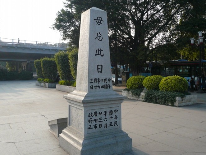 1925年,香港、廣州工人為聲援上海“五卅”反帝運(yùn)動,于6月19日和21日分別舉行大罷工。英、法等國派軍艦以武力威脅。6月23日,廣東各界群眾10萬余人在東較場舉行援滬案示威大會。午后游行,隊伍到達(dá)沙面租界對岸的沙基時,租界的帝國主義軍隊開槍掃射群眾,軍艦開炮助威,釀成死52人、重傷170多人、輕傷無數(shù)的慘案。慘案發(fā)生后,各界群眾團(tuán)體、國民黨中央執(zhí)行委員會、廣東省政府紛紛抗議英、法等帝國主義的罪行。廣東交涉署復(fù)英、法領(lǐng)事照會,提出5項嚴(yán)正要求。7月11日,廣州10萬民眾公祭沙基烈士。當(dāng)年立“毋忘此日”石牌,版權(quán)所有山東聊城聊之旅國際旅行社有限公司,轉(zhuǎn)載必究!1950年改建為“沙基慘案烈士紀(jì)念碑”。此碑現(xiàn)為廣州市文物保護(hù)單位。