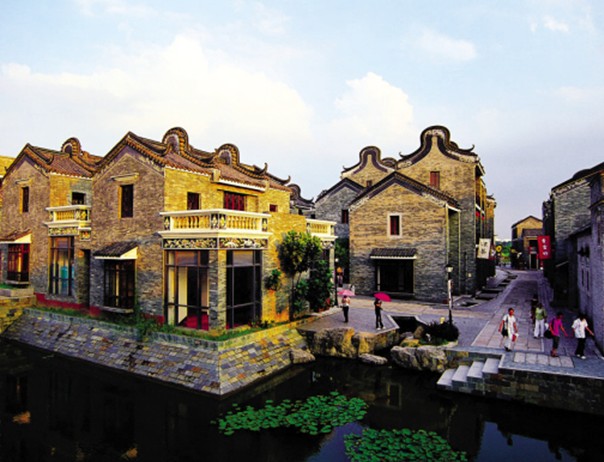 嶺南印象園位于廣州大學(xué)城所在的小谷圍島,總占地面積達(dá)16.5 公頃。這里四面環(huán)水,西臨洛溪島、北臨生物島、東臨長洲島、與會展中心所在的琶洲島隔江相望,交通便利。嶺南印象園依托天然的地域優(yōu)勢和原練溪村深厚的嶺南民風(fēng)民俗文化,建立了一個(gè)融文化觀光、趣味游樂、特色餐飲、休閑購物、精彩演藝于一體的大型休閑文化旅游景區(qū)。