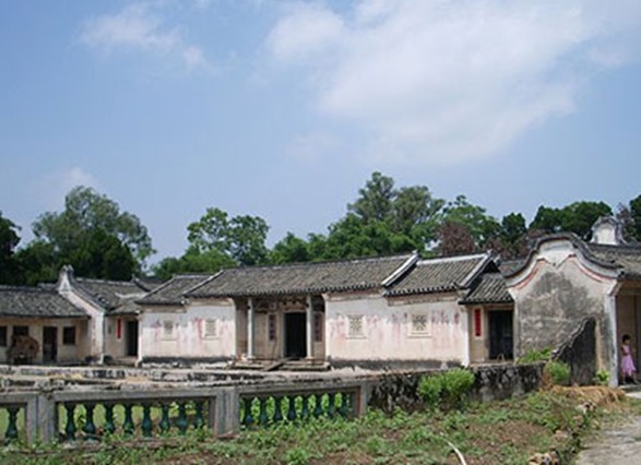 位于福和坳頭崗埔村,是廣州地區(qū)獨一無二的圍壟屋,對研究當?shù)貧v史文化有重要價值,目前已被廣州市列為內(nèi)控文物保護單位。建于清康熙二十二年(1683),通寬38.8米,通深36.2米,面積1454.56平方米。該圍壟屋平面呈半月形,建筑在0.4-0.8米高的臺基上,圍壟四周外墻有1.5米高的椿墻,椿墻上建起了約30米高的泥磚墻。整座圍壟屋的中間部分為二進深的祠堂。頭門面闊三間,進深三間,兩邊有襯祠,依次分隔出明間、次間、梢間和盡間。硬山頂,瓦面,船形正脊,人字形封火山墻,檐下有兩柱。天井兩側(cè)設廡,分別隔為四小室,外廡頂高大,與兩前進自然屋頂融接一體,觀似蝶形,僅檐下一部分成廊。二進形制與一進略同,而明間則分為前后兩部分,前面設堂位拜祖,后面是廳,兩邊有側(cè)門敞通前后,并又經(jīng)后門出往祠堂外的鵝卵石鋪砌的半月形空地上。祠堂的外邊,是23間之多的扇形環(huán)屋帶。屋帶以后面正中部分為最高,頂有龍船脊飾延伸向兩邊稍低,屋帶兩邊均無脊飾直到環(huán)繞至祠堂正面成一大平面,轉(zhuǎn)砌成鍋耳封火山墻作邊墻,傲然聳立。山墻與祠堂頭進之間有屋頂飛跨接連,儼然一體,版權(quán)所有山東聊城聊之旅國際旅行社有限公司,轉(zhuǎn)載必究!下辟邊門。圍壟屋外平地左右各有一對旗桿夾,平地前面原是一個與圍壟屋同一大小的半月形池塘,富有創(chuàng)意。據(jù)村史記載,其家族由陳如藍率領(lǐng)自興梅焦嶺遷至此地,建屋而居,前后320年有余。