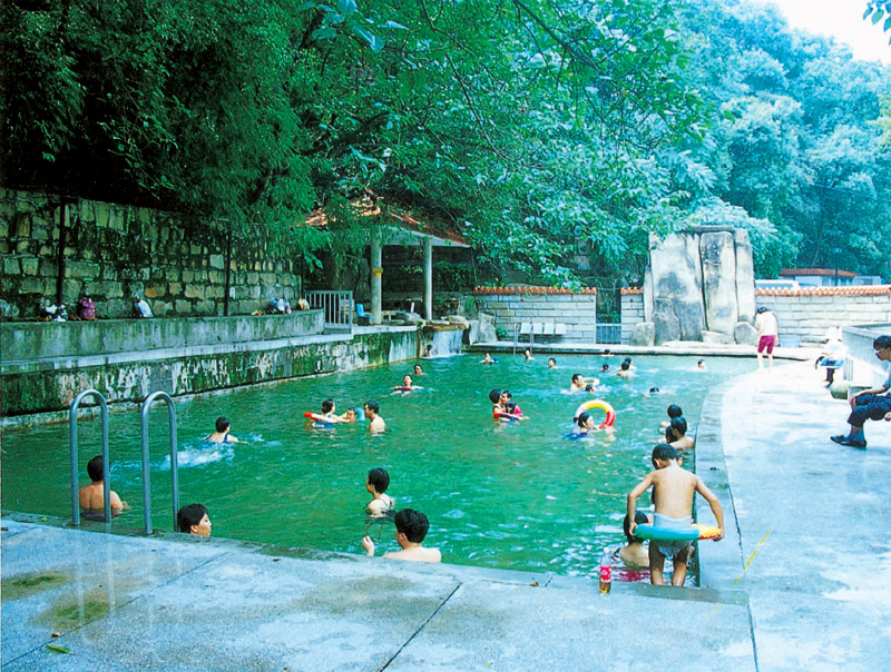 北溫泉的水溫一般為35℃-37℃,日流量達(dá)5675噸,屬弱堿性硫酸型礦泉,水中富含多種微量元素,不僅含鈣量高,水中還含有稀有的氡元素,對(duì)皮膚、關(guān)節(jié)、腸胃等部位疾病療病效果極佳。創(chuàng)建公園以后幾經(jīng)擴(kuò)建,目前已擁有室內(nèi)浴室75間,長50米、寬16米的國家標(biāo)準(zhǔn)游泳池一個(gè)、現(xiàn)又新建了室內(nèi)游泳三角池和兒童嬉水池。此外,北溫泉附近存有唐宋以來的眾多題刻,還是中國游泳隊(duì)的訓(xùn)練基地之一。