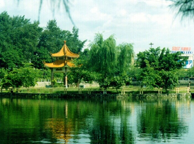 鱷湖共有12公頃的水面。雖然比不上大家閨秀般的杭州西湖,也算得上小家碧玉了;雖然沒有杭州西湖深厚的歷史文化沉積,卻也處處閃耀著客家文化的亮點。鱷湖青曲”是河源老八景之一,幾經(jīng)整治,鱷湖現(xiàn)在更加清波蕩漾,湖四周花香樹茂,垂柳夾岸,成為商業(yè)旺區(qū)一道旖旎的風景。
