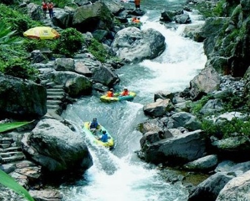 龍川九龍灣位于楓樹壩水庫下游至黎嘴河鎮(zhèn)河段,因楓樹壩水庫的保溫效應(yīng),冬季水溫比空氣溫度高6至8℃,從而形成“冬江水暖、江霧蒸騰”的奇觀,因此成為目前我國唯一的冬季漂流的去處。 九龍灣漂流,全程十三公里,是廣東著名的漂流勝地。有位澳門游客幽默地說:“在此漂流可漂到珠海、漂到澳門?!本琵垶尘徘删艦常粸骋积?zhí)?盡顯"幽、曲、翠、秀、真、古、奇、情"特色,神奇迷人。