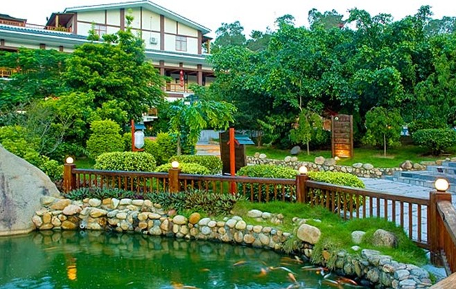 投資2.3億元依山而建的古兜溫泉,集山、泉、湖、海為一體,風(fēng)景優(yōu)美,有著豐富的溫泉資源,在古兜山下新近落成的溫泉谷,格調(diào)高雅,打造出一個(gè)不同凡響的溫泉王國。溫泉谷中間有一條約150米長的人工鵝卵石河道,它不僅為景區(qū)增添了春山幽谷的野趣,更和中央水區(qū)的大舞臺(tái)及各大小泡池相連,將谷內(nèi)建筑群落自然分成了三大區(qū)域:北邊是歐式風(fēng)格的“羅馬殿”,東邊則是日本和式風(fēng)格的“東瀛閣”,南邊是“唐宮”。