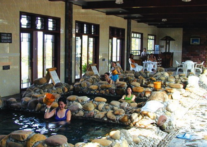 本世紀(jì)中葉,雖有科學(xué)家倡議,辟金山溫泉為地?zé)崮茉?,惜因?guó)力所限,未能如愿。近年,當(dāng)?shù)刎?cái)政斥資6億元,辟地800余畝,于溫泉四周,建成溫泉景區(qū)、度假酒店、健身中心及豪華別墅,雖溫泉日流出水量2000余噸,以每人每日用水一噸計(jì),年可接待游客80萬(wàn)眾,但目前客房?jī)H200余間,每于周末,人滿(mǎn)為患總統(tǒng)套間亦不閑置,有遠(yuǎn)客欲求于度假酒店一宿而不可得,唯有沐后復(fù)驅(qū)車(chē)折返市區(qū)。岑副市長(zhǎng)介紹,當(dāng)局已全力投資,籌建國(guó)際會(huì)議中心、會(huì)員大夏等配套設(shè)施,期至后年,當(dāng)可年接待60萬(wàn)人次,一座溫泉新城,于其時(shí)也,將矗立于金山吉水之間。