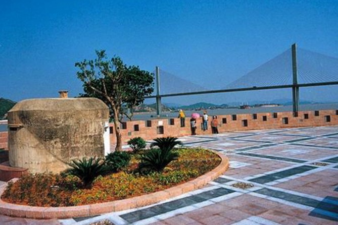 崖門古炮臺位于新會崖門出海水道東岸的古井鎮(zhèn)官沖村,最早設置于清康熙五十七年(1718年),并形成雛形,后于清嘉慶十四年(1809年)正式設立興建。崖門古炮臺雄踞新會崖山,倚山面海,緊緊扼守著珠江八大出海口之一——崖門通往南海的進出水道。崖門大橋是跨越崖門水道的特大型雙塔單索面斜拉橋,全長1289米,跨度668米,橋下可通航5萬噸級船舶,跨度之大為目前國內(nèi)同類型橋梁之最,亞洲第一,世界第二。
