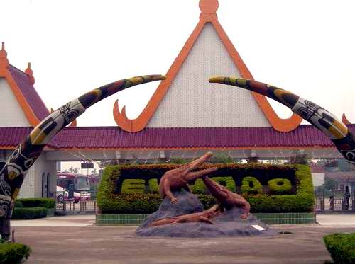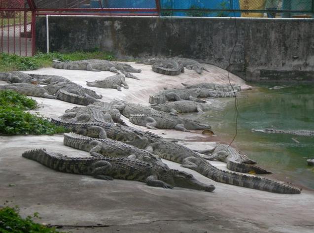 島那金碧輝煌,巍峨壯麗的泰式門樓,門前寬廣的停車場可一次性停放上百輛大巴,進入大門后,有一個十分醒目、高達(dá)4米的大型鱷魚雕像——“鱷魚一家”吸收不少游客紛紛在此攝影留念,離雕像百米處,十多個鱷魚池座落在鮮花叢中、綠茵地上、池中養(yǎng)有我們祖先稱為“噴火龍”、“鮫龍”的楊子鱷、泰國灣鱷、馬來鱷、雜交鱷等四個品種,大小近千條,最小的有剛出殼的幼鱷,體型最大的有4米多長,重達(dá)千斤。此外還養(yǎng)有一批鴕鳥、狗熊、孔雀、猴子、大蟒蛇、駱駝、驃頭大馬供游人觀賞、合照,大仿古大炮、踏水車、水上單車等有獎娛樂項目供游人玩樂。