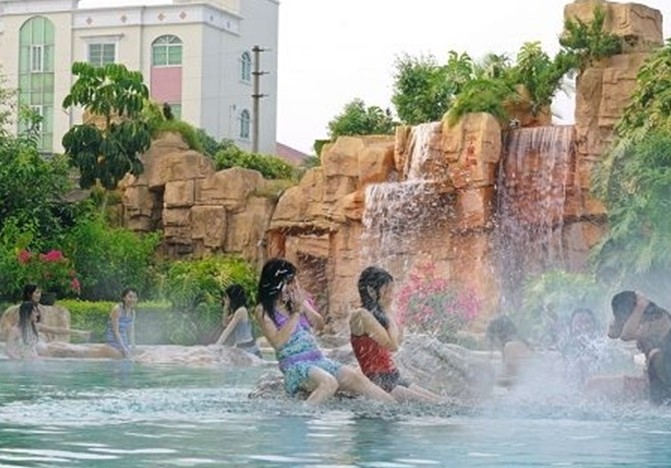 溫泉樂園的露天溫泉池區(qū)設有33個東洋風情的溫泉池,區(qū)內設計分布合理,分有高溫池、常溫池和低溫池。按功能分有理療池、通用池、娛樂池。野趣園林的布局,大池小池相間,紅花綠樹相映,彩石亭榭布綴,曲徑通幽、蟲唱鳥鳴、流水輕和、古樸典雅的南國民風,濃濃的異國風情,饒有情趣,較有特色的是瀑布池、中藥池、香木池、香水池、情侶池、浪溫池、按摩池。
