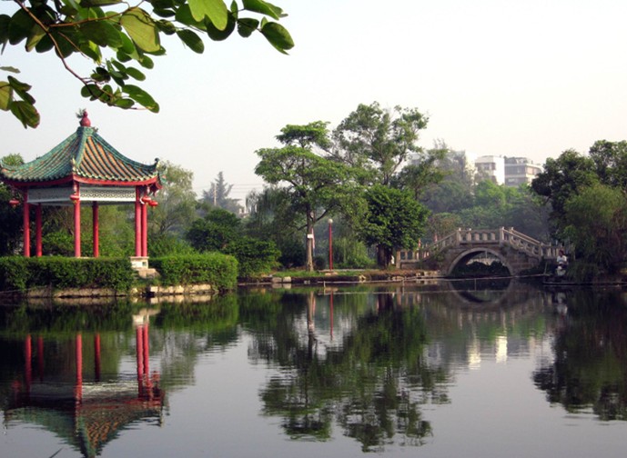 建于1958年,在榕城西南,傍依榕江南河,園內(nèi)西湖岸柳垂蔭,碧波蕩漾。湖中有兩層湖心亭,九曲橋由亭向左右伸展,如龍臥波,橋下游艇穿梭,錦鱗來去,令人神怡。依欄遠(yuǎn)眺,一湖景致盡收眼底。橋頭的“雙象戲水”大型雕塑,高6.6米,大象長鼻高揚(yáng),仰天噴水,小象則天真嬉戲,依偎在旁。園中并有少年宮、游泳池、兒童樂園等,并辟有百花圃,群卉競放,姹紫嫣紅。